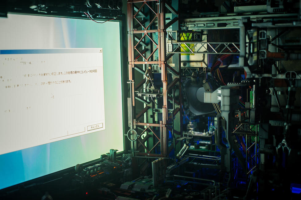 需要指出的是,池内启人所设计这一电脑MOD每一个部件的具体功能都等待用户自己去发掘。比如,图中这个炮筒造型的玩意儿实际上是一个外置U盘,而另一个坦克模样的东西则是鼠标。